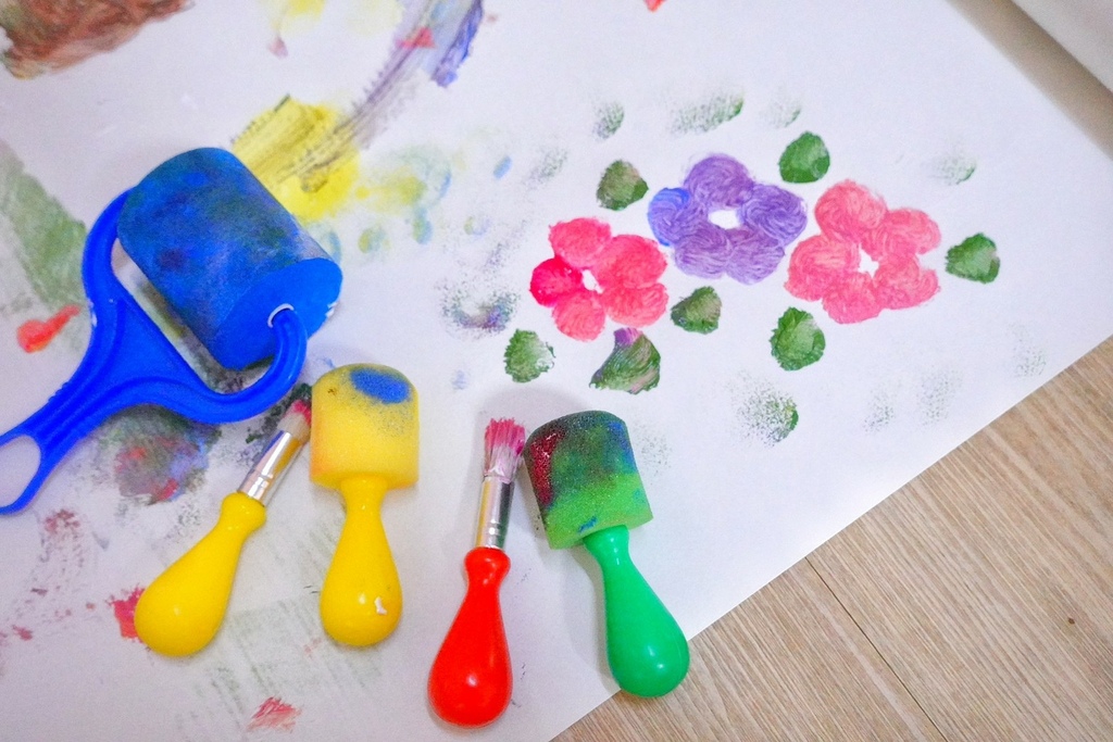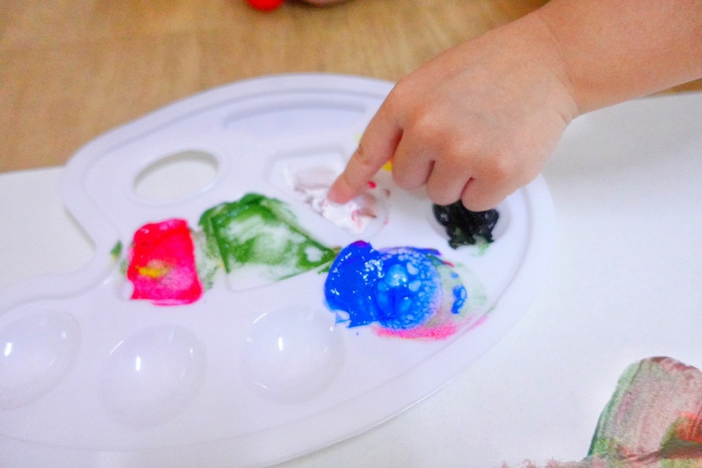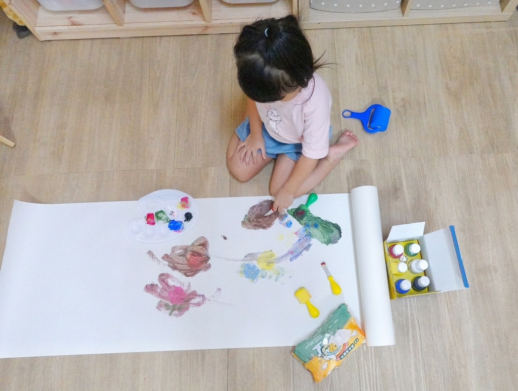 畫畫上讓孩子用不同素材畫上,可以讓孩子觀察顏料與畫筆的不同細節