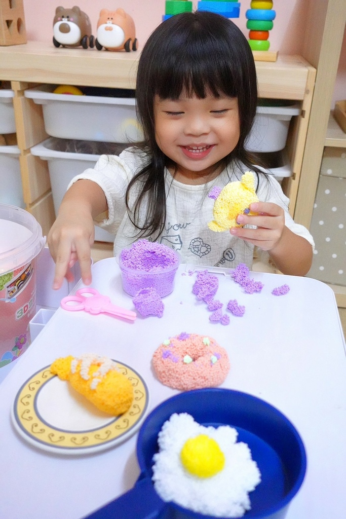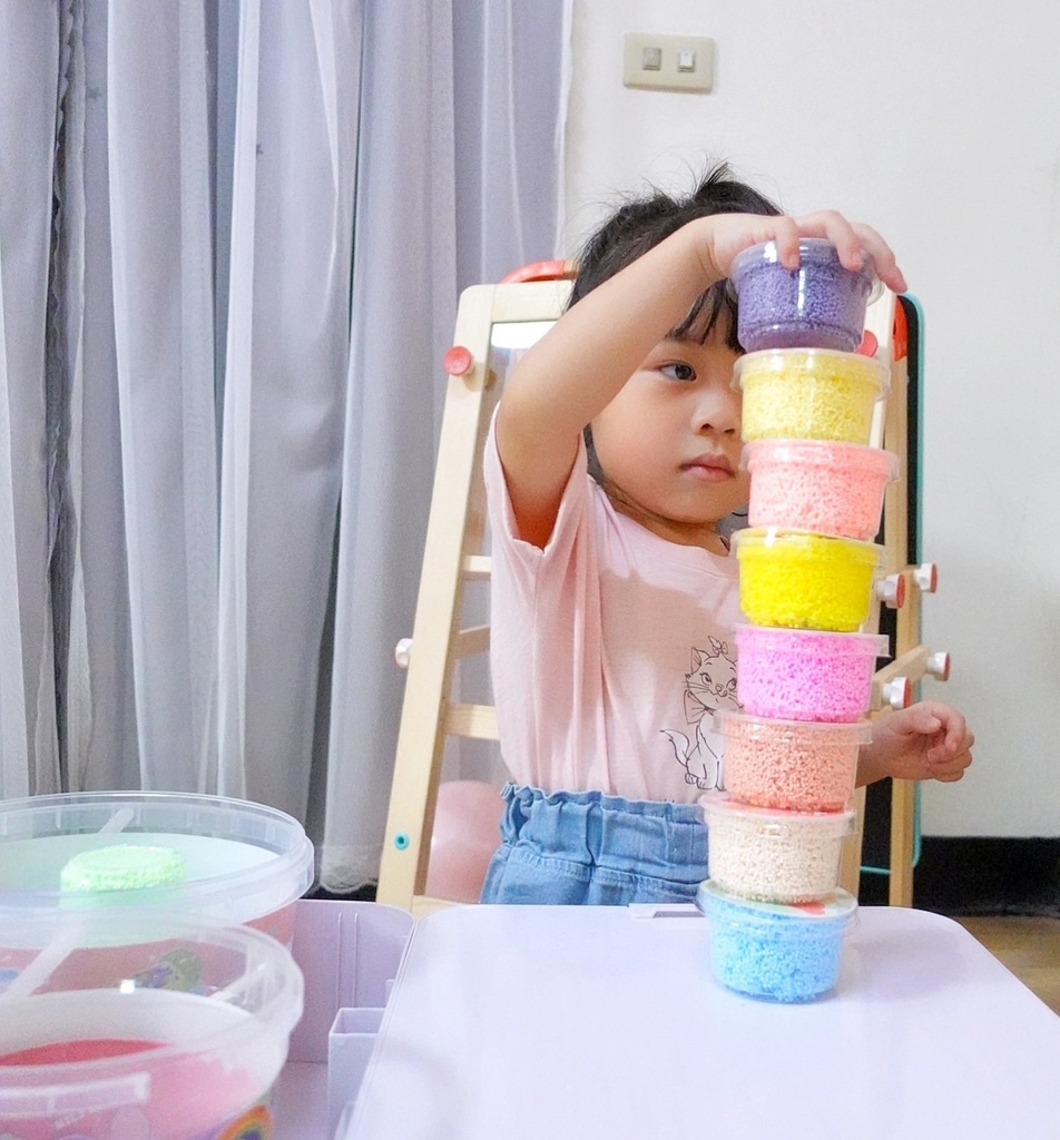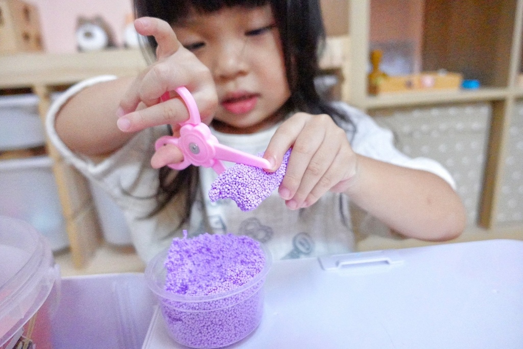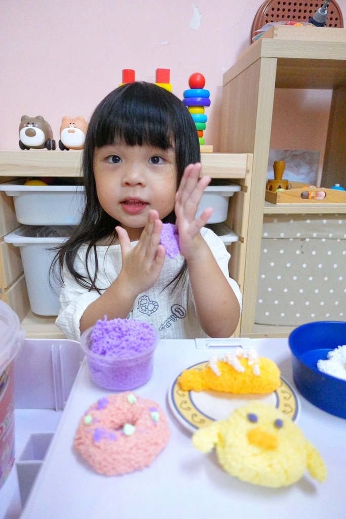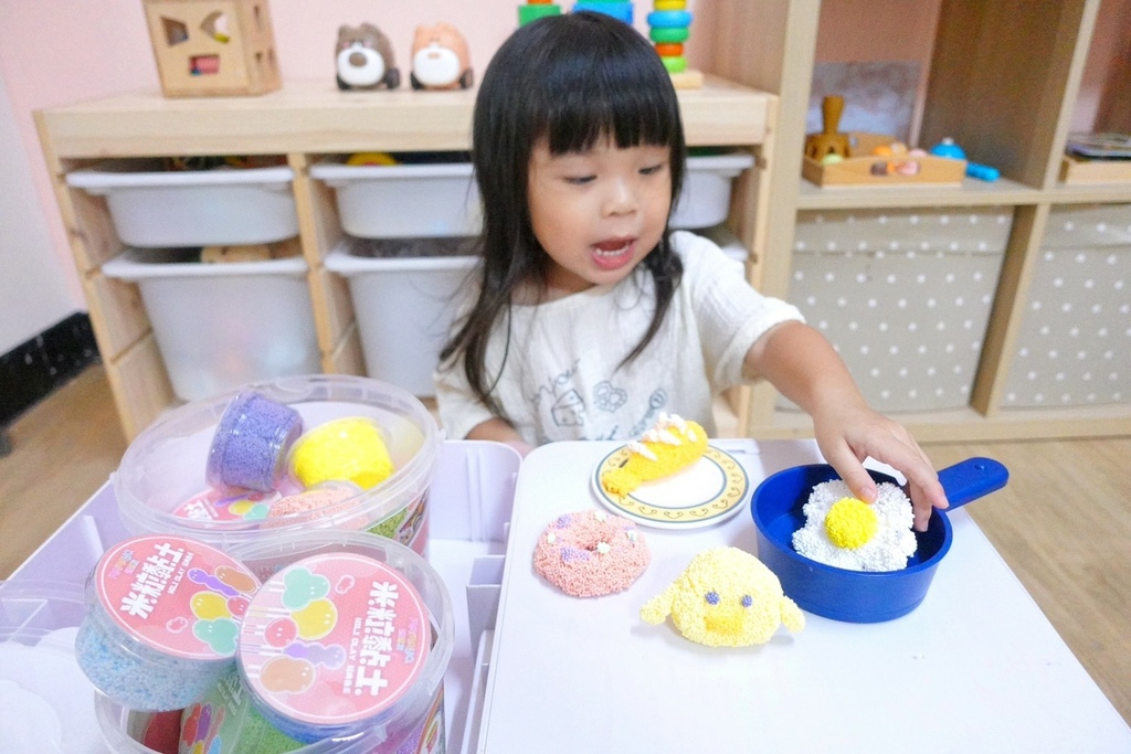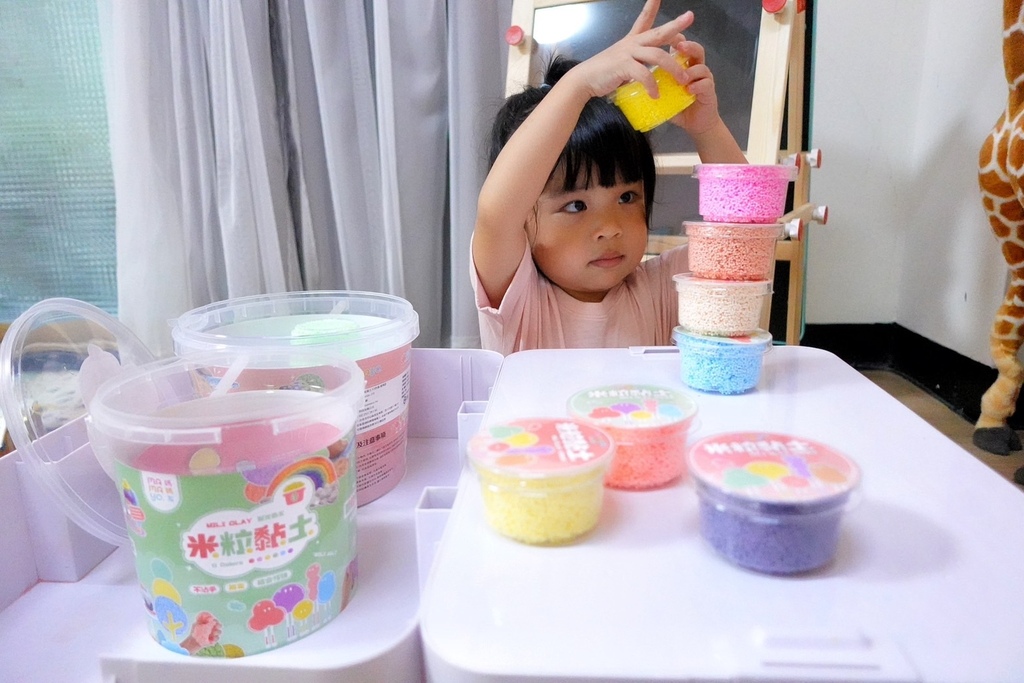 奧莉超愛米粒黏土,米粒黏土在觸感上更佳豐富,不容易掉屑卡指縫