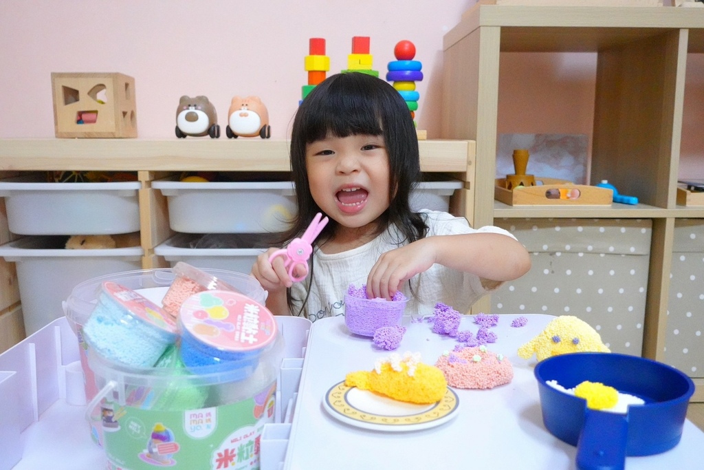 玩黏土可以訓練手指精細動作,大量的觸覺刺激,媽媽友MAMAYO米粒黏土更是首創不會乾的微粒黏土