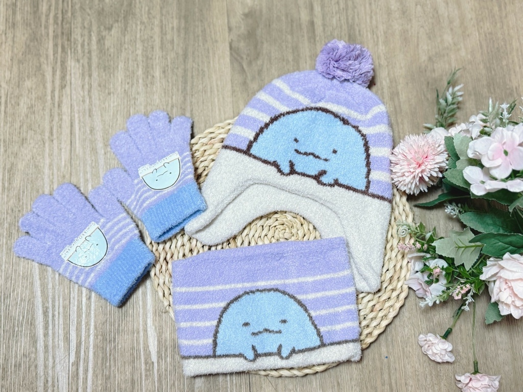 是正版授權的角落生物兒童保暖三件套,打開就先被那個觸感驚艷到!